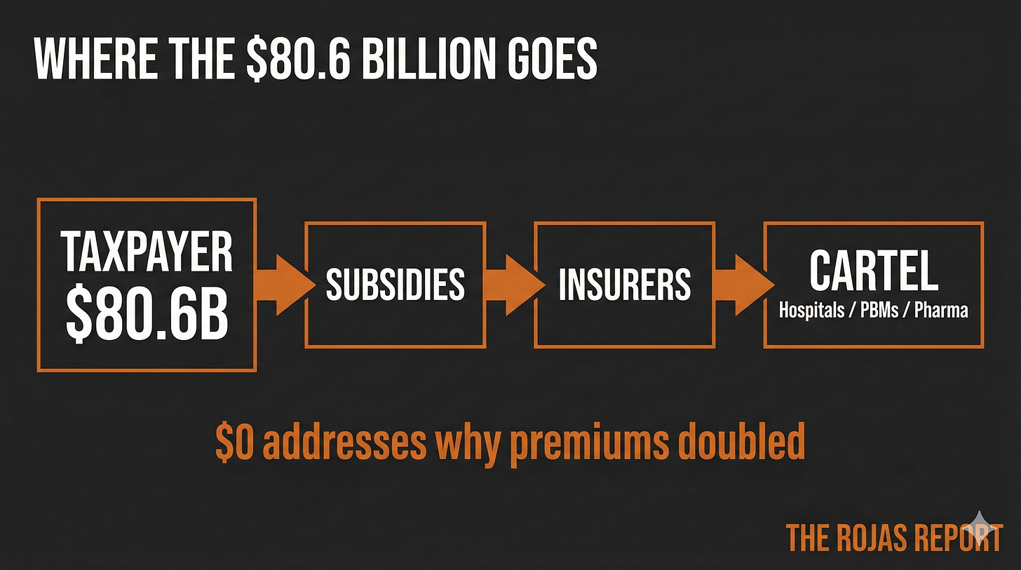 The House just voted to spend $80.6 billion extending ACA subsidies. Not one dollar addresses why premiums doubled. That's the point.