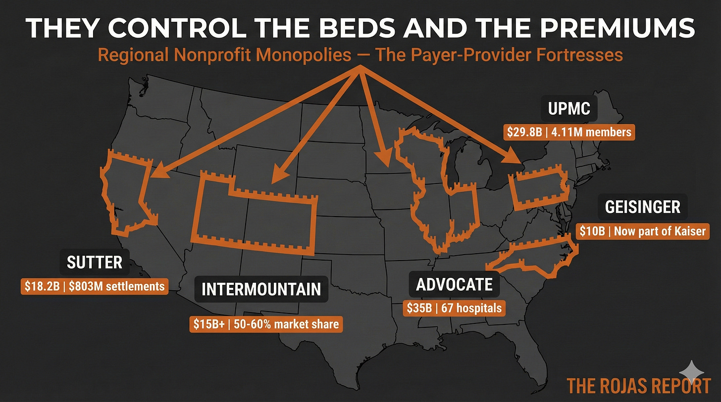 We’ve covered Kaiser (the integration template), the Academic Medical Centers (the prestige cartel), and the Catholic Systems (the cross-market consolidators).
