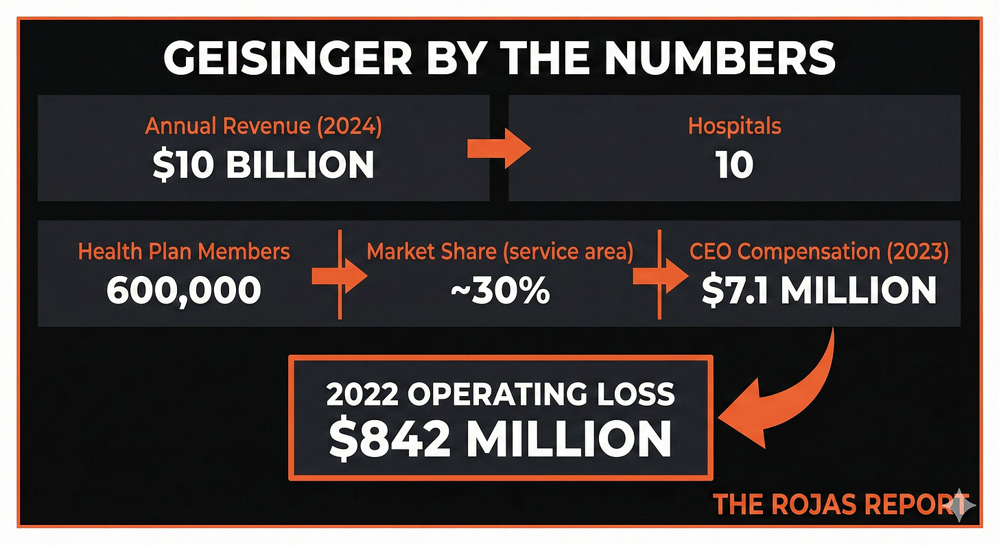 But Geisinger was also struggling. An $842 million loss in 2022. Encroachment from UPMC and Penn State Health. A health plan that was innovative but small.