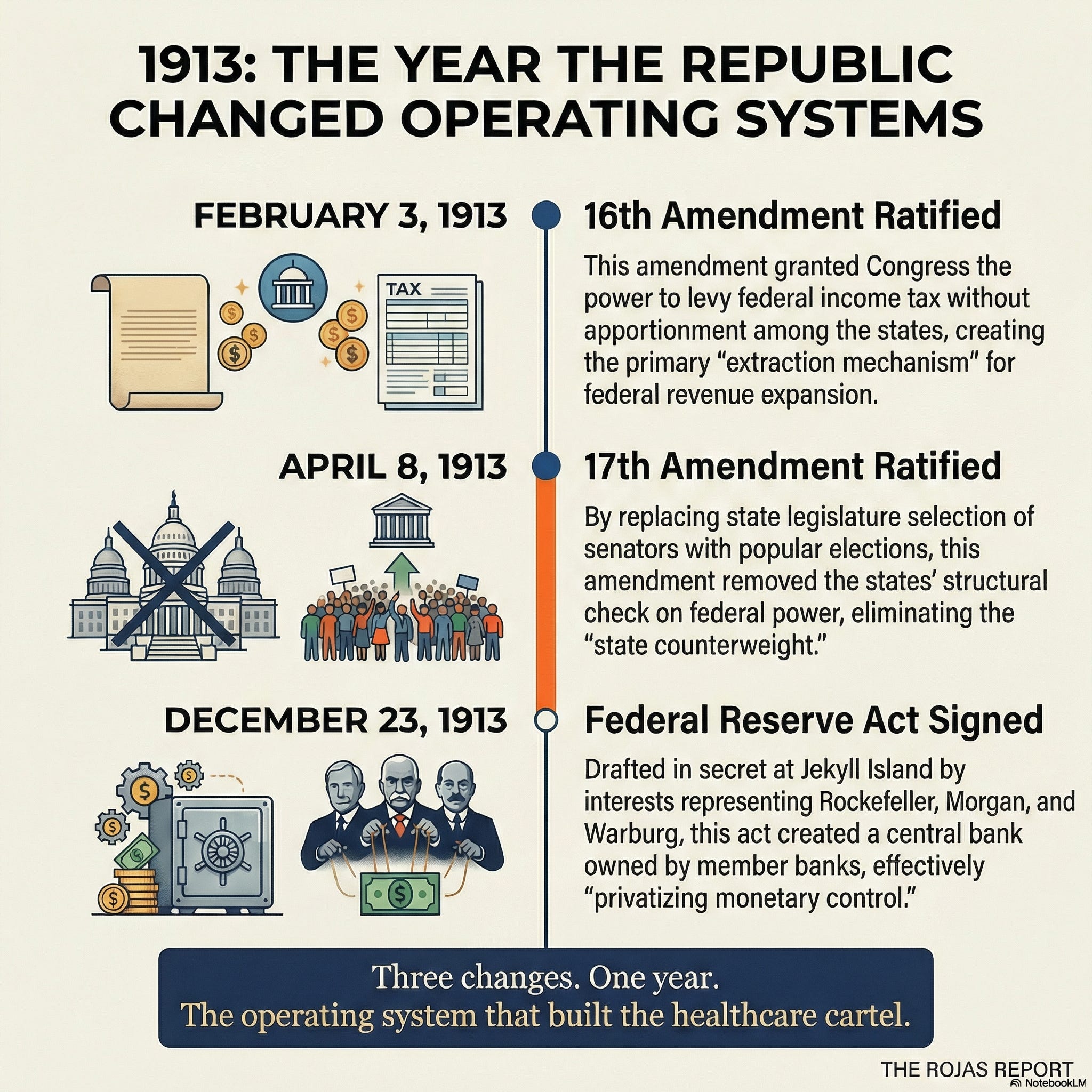 1913: The Year They Rewired the Republic. The Healthcare Cartel Is What They Built With It.