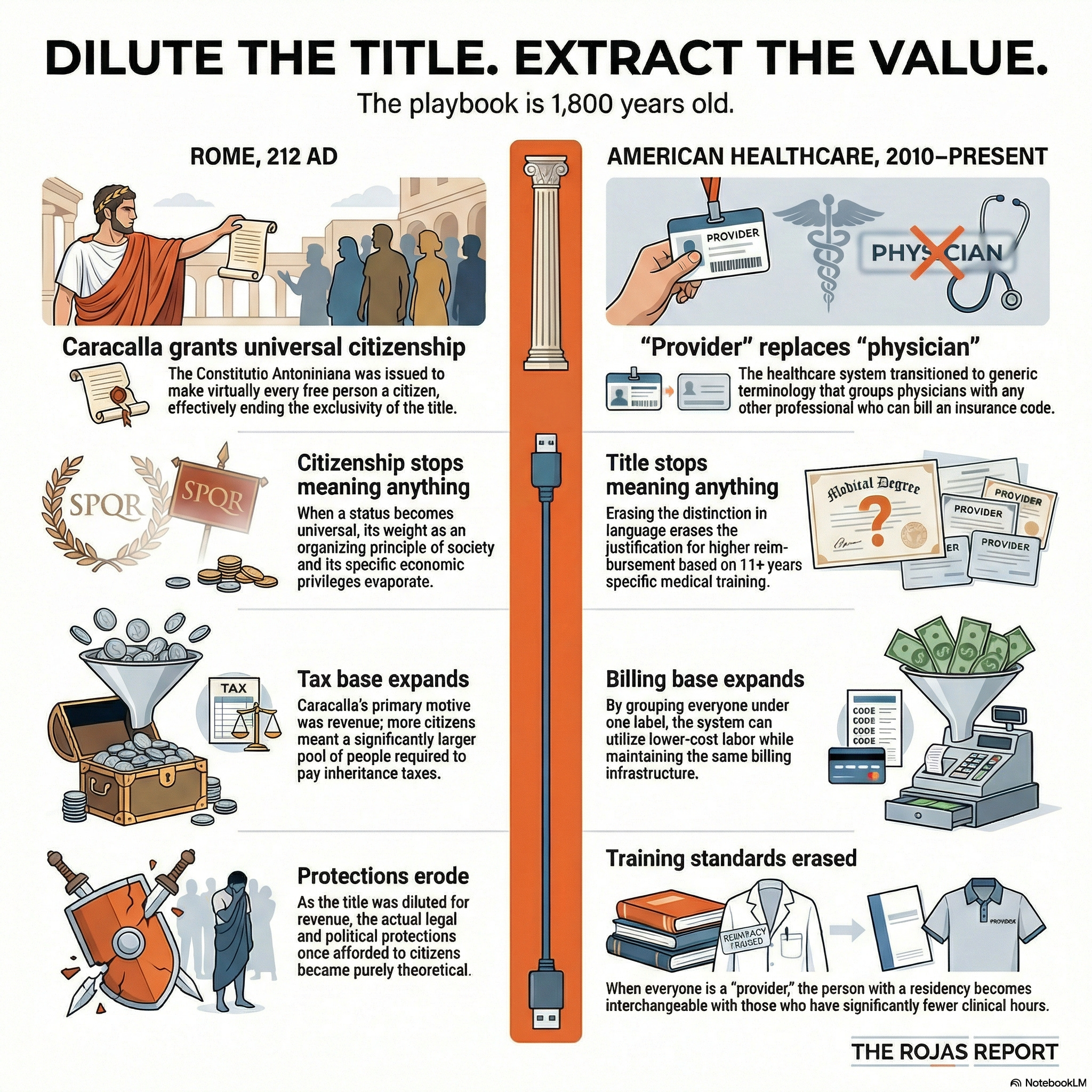They changed the word from “physician” to “provider” for the same reason Caracalla changed the word “citizen.” Not to include you. To extract from you. 60,000+ physicians see it now. Subscribe.