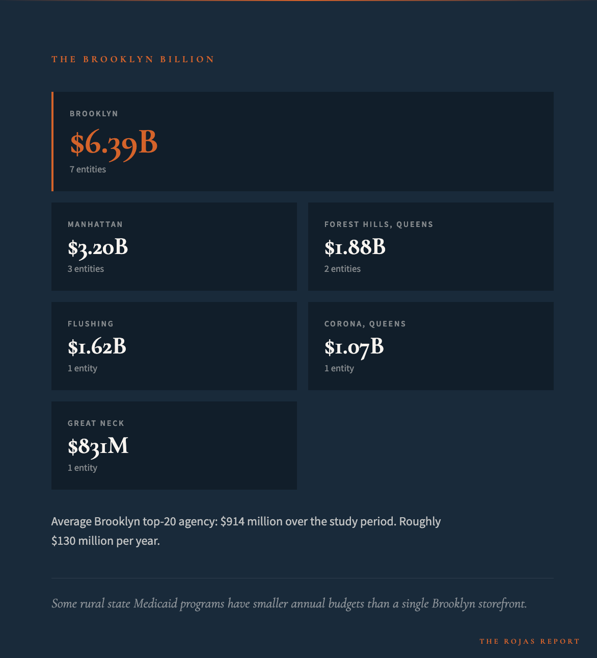 Seven home health agencies in Brooklyn billed $6.4 billion.