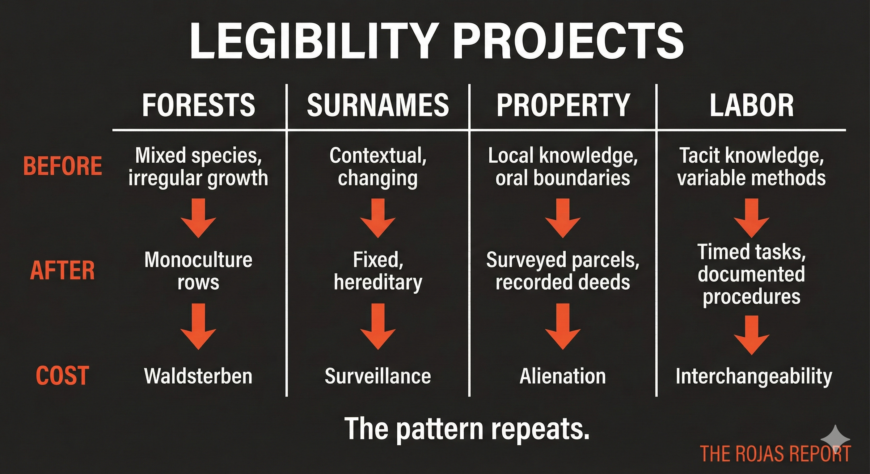 Every legibility project follows the same arc.
