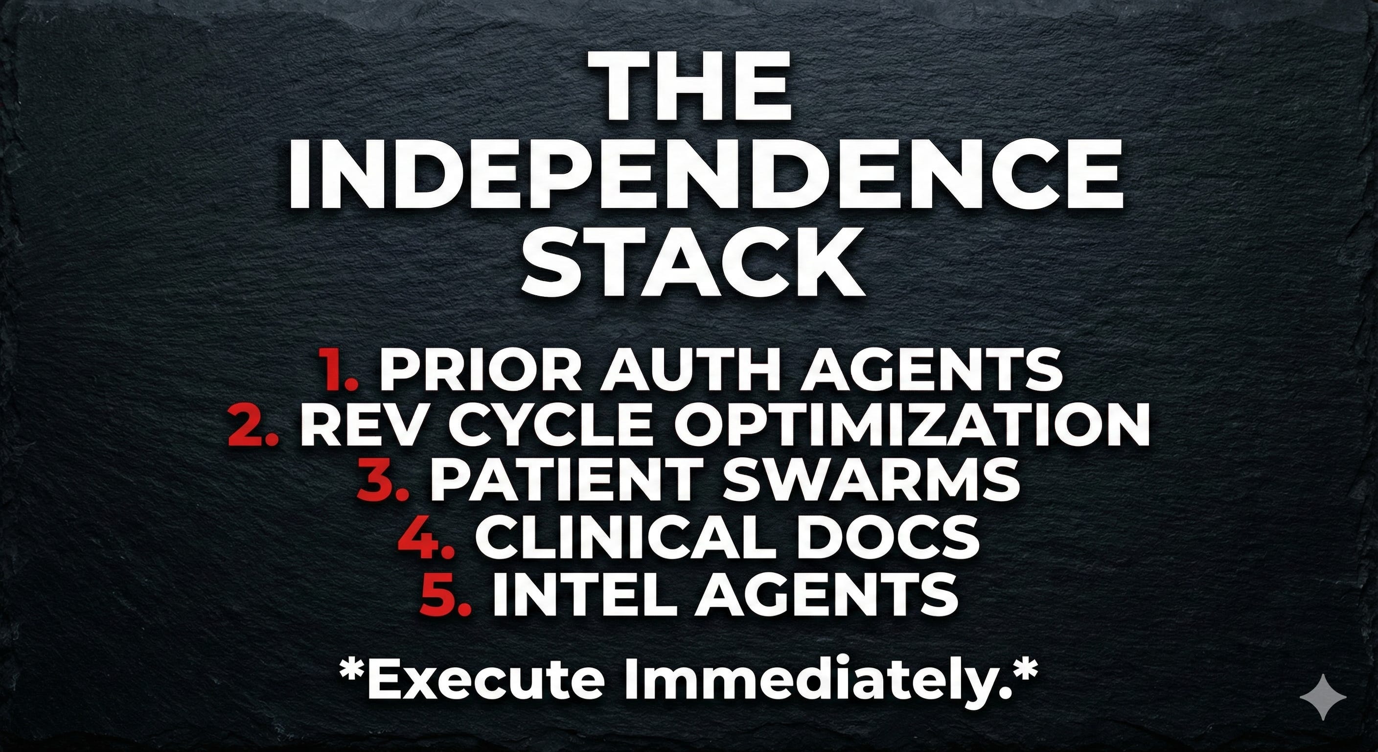 The independents who move first will build capabilities their employed competitors won’t match for years. They’ll recruit the best physicians who are tired of being employees. They’ll capture market share while health systems are still running pilot programs through committee.