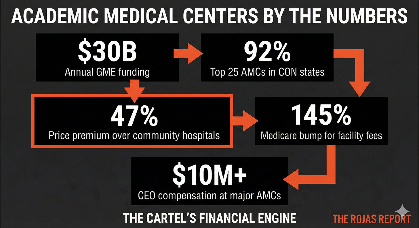 If you’re an independent physician competing against an AMC, you’re not just competing against a hospital. You’re competing against a fortress with six different moats, a century of prestige, and a lobbying operation that reaches into every committee room in Washington.