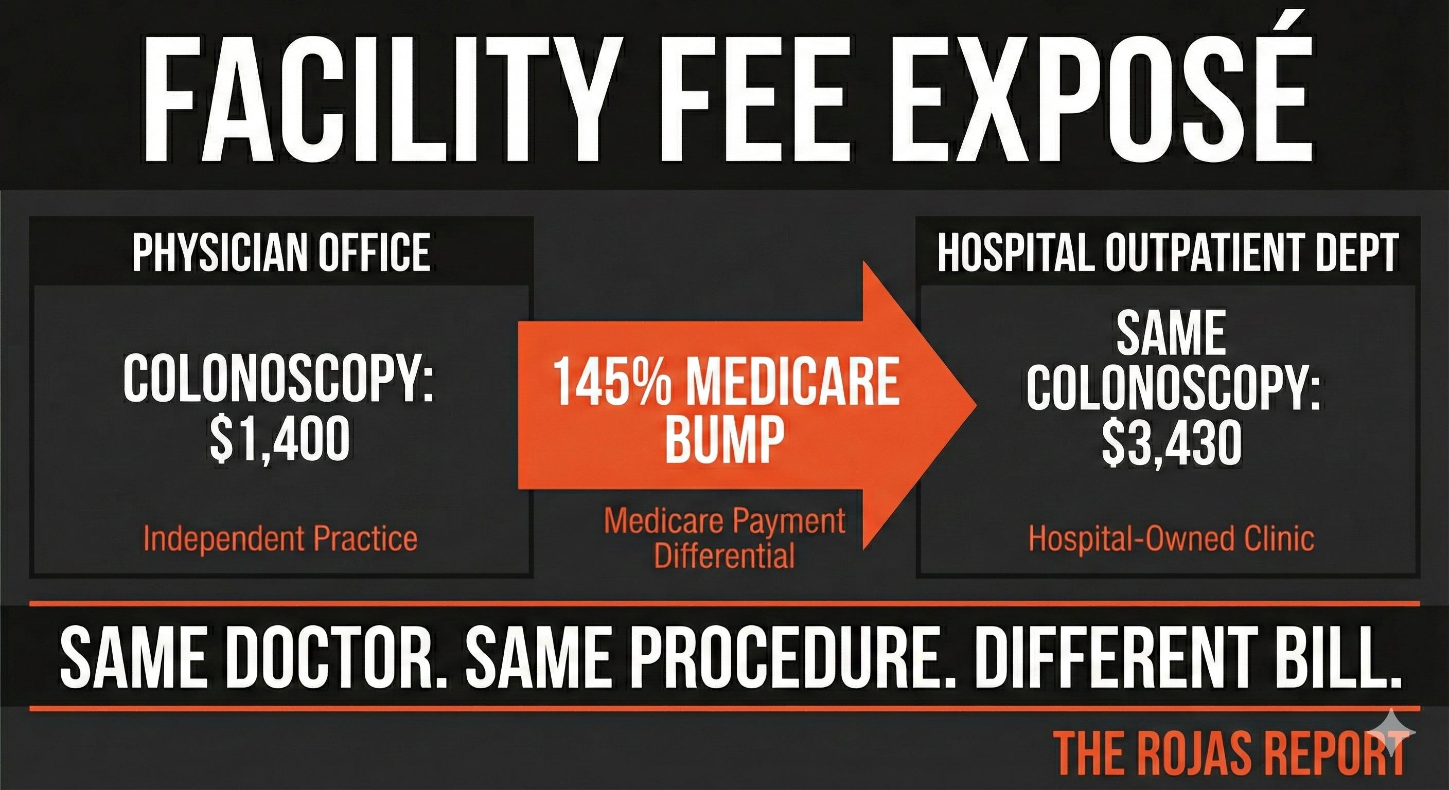 When an AMC acquires a physician practice and converts it to a “Hospital Outpatient Department,” Medicare pays 145% more for the exact same service.